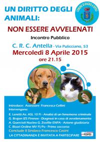 Il Comune di Bagno a Ripoli organizza l'incontro pubblico Un diritto degli animali: non essere avvelenati, che si svolgerà mercoledì 8 aprile 2015, alle 21.15, presso il Circolo Crc Antella, in via di Pulicciano 53, ad Antella (Bagno a Ripoli...