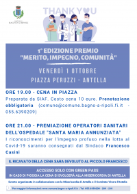 Venerdì 1 ottobre alle 19 all’Antella cena di beneficenza e consegna dei riconoscimenti al direttore sanitario, ai primari e al personale del Niccheri per l’impegno profuso da inizio emergenza: “Un grande grazie collettivo a...