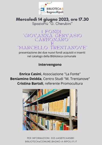 Presentazione dei due nuovi fondi acquisiti e inseriti nel catalogo della Biblioteca comunale.