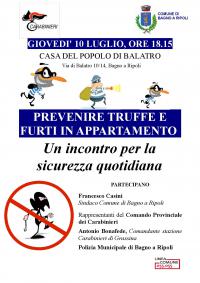 Il Comune di Bagno a Ripoli, in collaborazione con l'Arma dei Carabinieri, organizza l'iniziativa “Prevenire truffe e furti in appartamento. Un incontro per la sicurezza quotidiana”