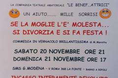 Sabato 20 e domenica 21 la compagnia “Le Benef… attrici” porterà in scena (per una buona causa) la commedia “Se la moglie l’è molesta, si divorzia e si fa festa&r